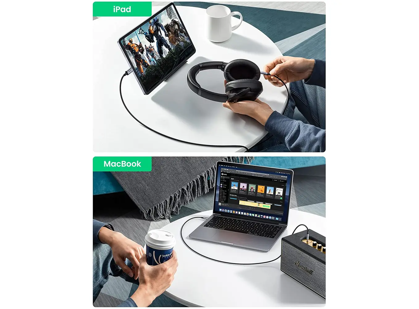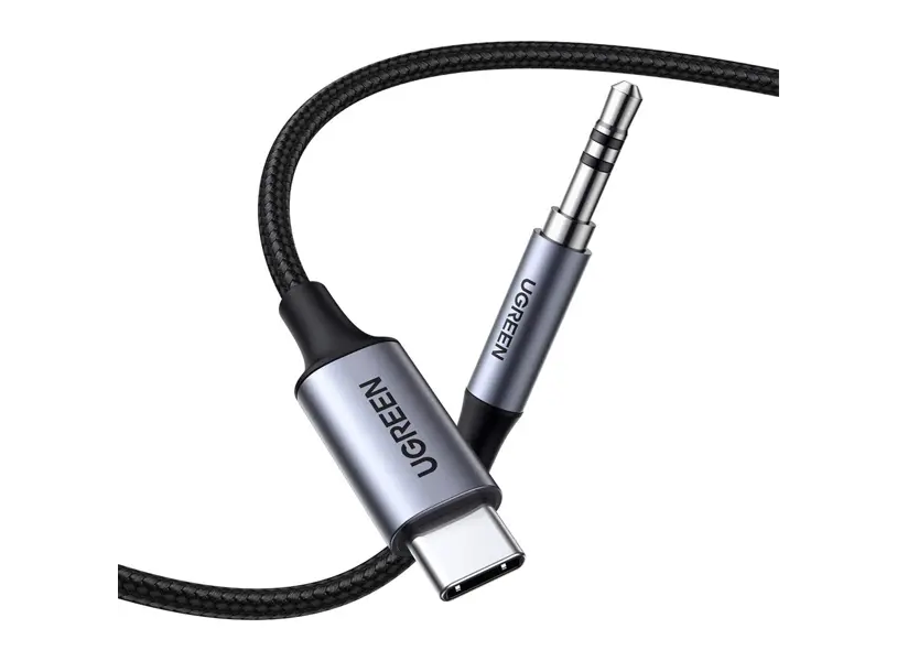 აუდიო ადაპტერი UGREEN CM450 (20192), Type-C Male To 3.5mm Male Audio Cable With Chip, 1m, Black/Grey