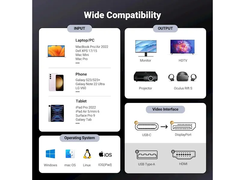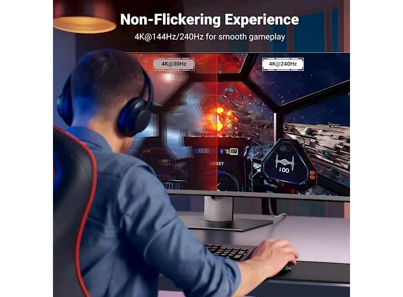 - თავსებადობა: G-Sync/FreeSync, ეკრანის ნაკადის შეკუმშვა (DSC),