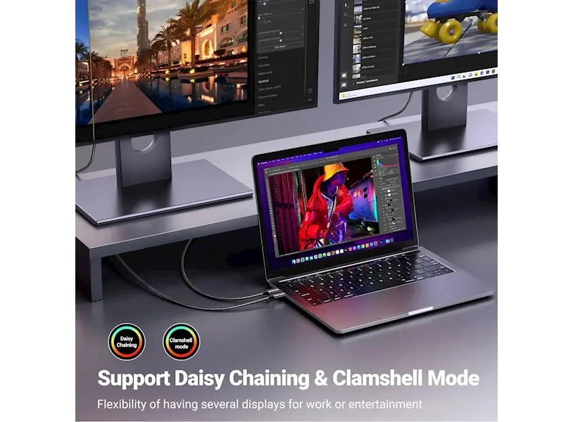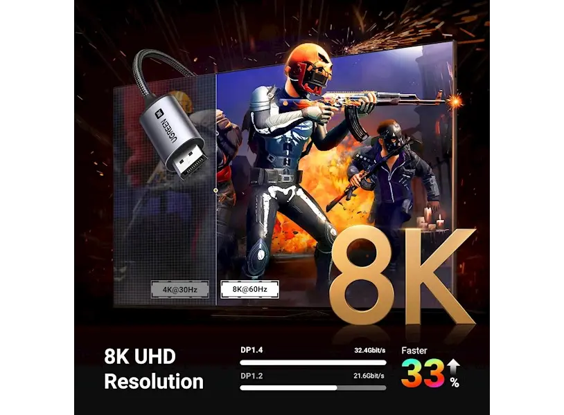 ვიდეო კაბელი UGREEN CM556 (25839), 8K Type C to DisplayPort, 3m, Black/Grey