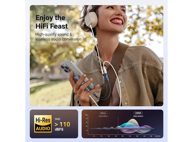 UGREEN CM721 (25837) Type-C to 3.5mm აუდიო ადაპტერი საშუალებას გაძლევთ Type-C პორტის მქონე მოწყობილობებზე გამოიყენოთ სტანდარტული 3.5mm ყურსასმენები, რაც უზრუნველყოფს მაღალი ხარისხის ხმას და კომფორტულ გამოყენებას. Power Delivery (PD) ტექნოლოგია გაძლევთ საშუალებას დატენოთ მოწყობილობა და ერთდროულად მოუსმინოთ მუსიკას ან განახორციელოთ ზარები. ციფრული ჩაშენებული DAC ჩიპი უზრუნველყოფს ხმოვანი სიგნალის სისუფთავესა და სტაბილურობას. კომპაქტური და გამძლე დიზაინი, შავი ელეგანტური ფერი და მაღალი გამტარობის მასალები ადაპტერს აქცევს იდეალურ გადაწყვეტილებად მათთვის, ვისაც სურს შეუზღუდავი მუსიკის მოსმენა.