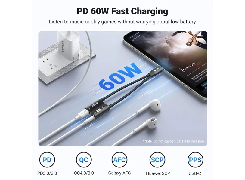 - მხარს უჭერს PD 60W დატენვას ჩაშენებული ძლიერი დამტენის ჩიპით