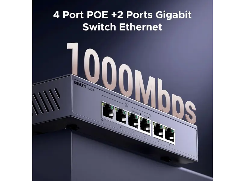 UGREEN CM741 6-Port Gigabit PoE+ Switch საიმედო და მაღალი წარმადობის ქსელური გადაწყვეტაა როგორც სახლის, ისე ოფისის ინფრასტრუქტურისთვის. მოწყობილობა აღჭურვილია 6 გიგაბიტიანი პორტით, რომელთაგან 4 მხარს უჭერს PoE+ ფუნქციას, რაც საშუალებას გაძლევთ ენერგია მიაწოდოთ IP კამერებს, VoIP ტელეფონებს, Wi-Fi access point-ებს და სხვა PoE მოწყობილობებს პირდაპირ ქსელური კაბელით. ეს ამარტივებს მონტაჟს და ამცირებს დამატებითი კვების ბლოკების საჭიროებას. მაღალი სიჩქარე და სტაბილური მონაცემთა გადაცემა უზრუნველყოფს შეუფერხებელ მუშაობას დატვირთვის პირობებშიც. მეტალის ძლიერი კორპუსი, გადახურებისგან დაცვა და ჭკვიანი ენერგომენეჯმენტი მოწყობილობას გამძლეს და უსაფრთხოს ხდის. UGREEN CM741 იდეალური არჩევანია უსაფრთხო, საიმედო და მოქნილი ქსელის ასაშენებლად მცირე და საშუალო გარემოში.
