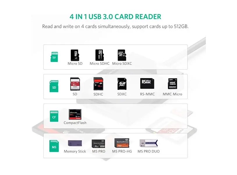 ბარათის წამკითხველი UGREEN CR125 (30333) USB 3.0 All-in-One Card Reader 0.5M
