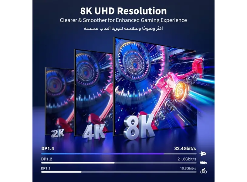 - 8K ულტრა მაღალი გარჩევადობა: UGREEN DisplayPort 8K კაბელი მხარს უჭერს