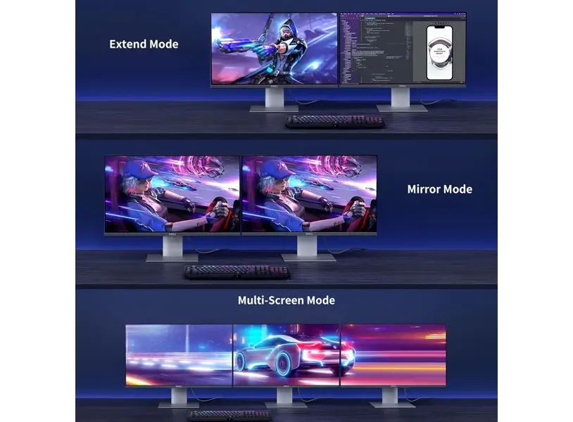 - სამმაგი რეჟიმი: UGREEN 8K DP კაბელი მხარს უჭერს სარკისებურ რეჟიმს,