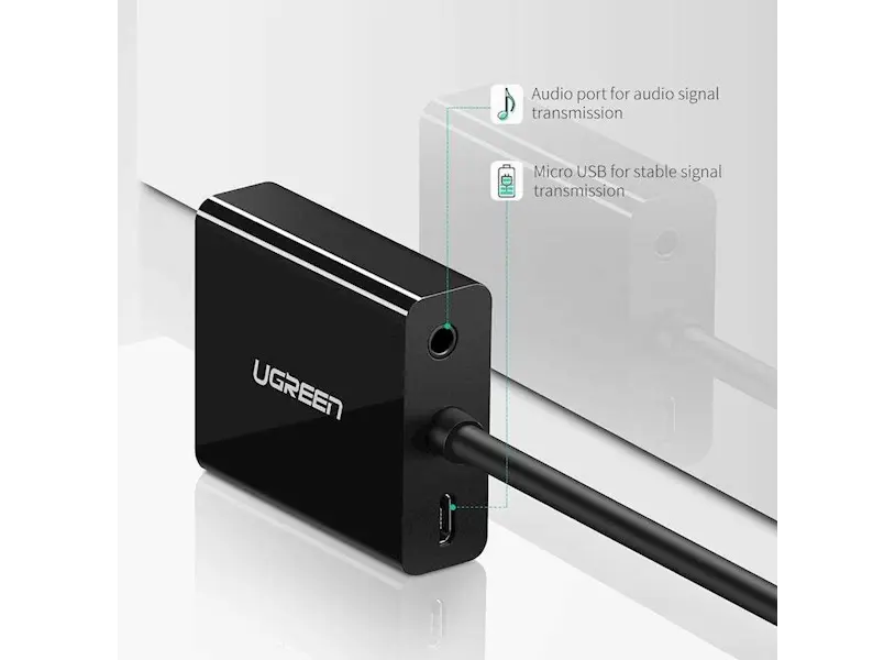 ადაპტერი UGREEN HU-516 (20694), HDMI to VGA Adapter With 3.5mm, 30cm, Black