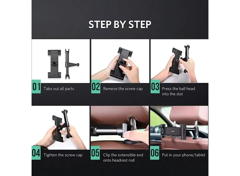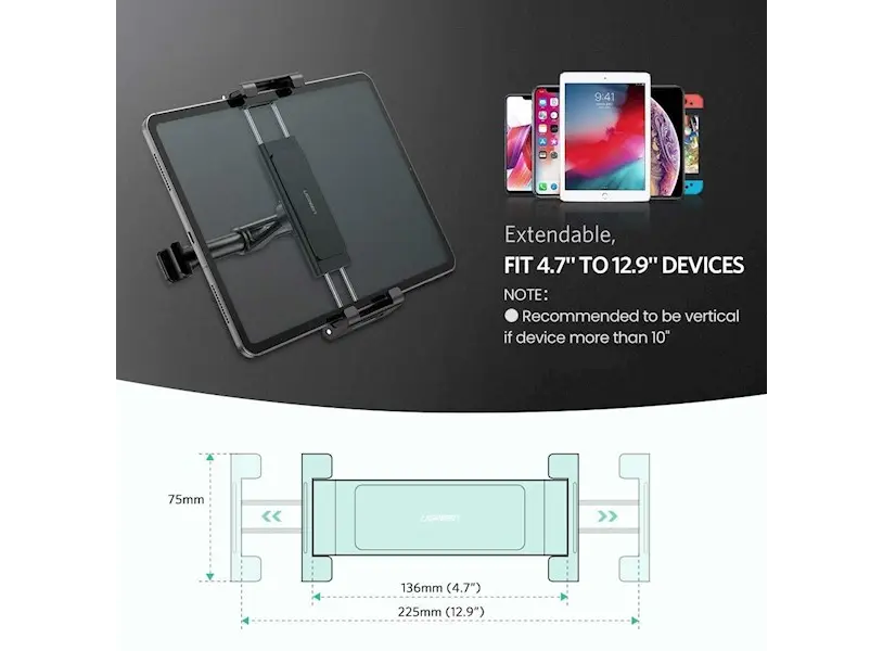 პლანშეტის დამჭერი UGREEN LP160 (60108) Car Headrest Mount Holder, Black