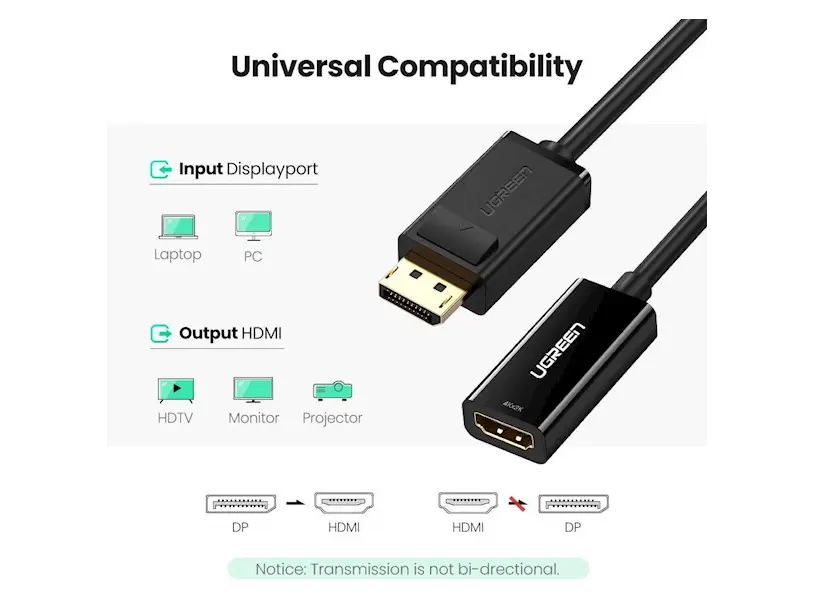 ადაპტერი UGREEN MM137 (40363) DisplayPort to HDMI Female Converter 4K*2K 25cm (Black)