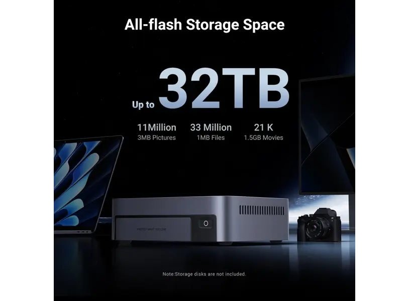 UGREEN NASync DXP480T Plus წარმოადგენს მაღალტექნოლოგიურ შენახვის სისტემას, რომელიც განკუთვნილია როგორც პროფესიონალური, ისე სახლის მომხმარებლისთვის. მოწყობილობა აღჭურვილია მძლავრი Intel i5-1235U პროცესორით, 8GB ოპერატიული მეხსიერებით და 128GB სისტემური SSD-ით, რაც უზრუნველმყოფს სწრაფ და სტაბილურ მუშაობას მრავალდონიან რეჟიმში. NAS სისტემა იყენებს diskless არქიტექტურას, რაც ნიშნავს, რომ მომხმარებელს შეუძლია თავად განსაზღვროს შენახვის მოცულობა მყარ დისკებზე. მოწყობილობას გააჩნია მრავალმხრივი ინტერფეისები, მათ შორის RJ45 ქსელური პორტი, USB პორტები და HDMI გამოსავალი, რაც სარგებლობის კომფორტსა და მოწყობილობებთან მარტივ კავშირს უზრუნველყოფს. თანამედროვე დიზაინით და Space Gray შეფერილობით, ის ჰარმონიულად ერწყმის ნებისმიერ სამუშაო გარემოს. იდეალურია ფაილების გაზიარების, მედია სტრიმინგის ან პირადი ღრუბლოვანი შენახვისთვის.