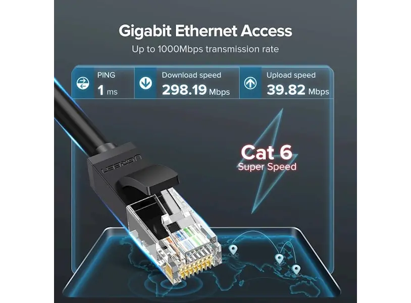 ქსელის კაბელი UGREEN NW102 (20166) Cat6 Patch Cord UTP Lan Cable, 20m, Black