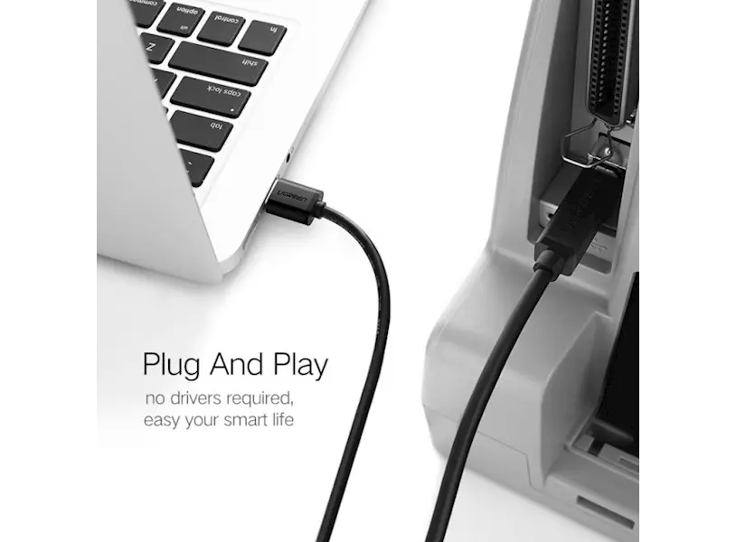 პრინტერის კაბელი UGREEN US135 (20847) USB 2.0 AM to BM Print Cable 2M Gold-Plated (Black) 2M