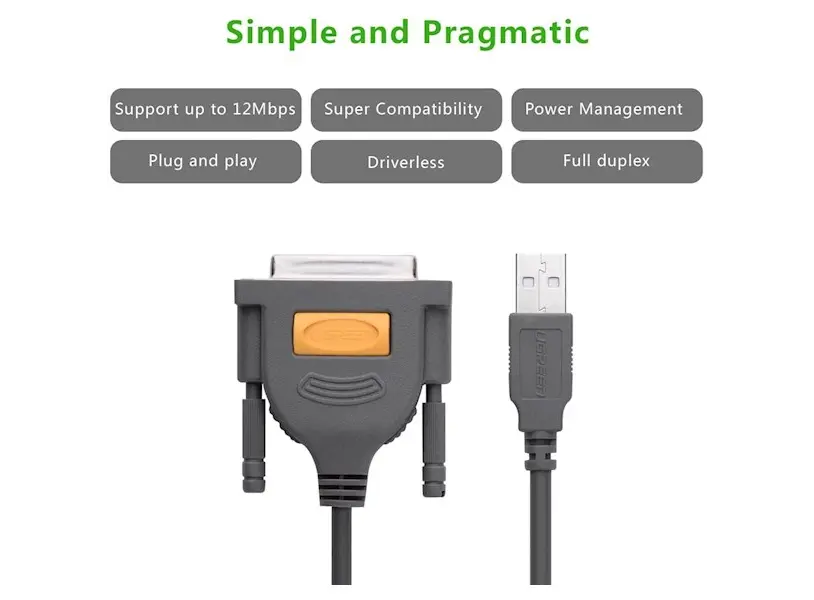 პრინტერის კაბელი UGREEN US167 (20224) USB to DB25 Parallel Printer Cable 2m