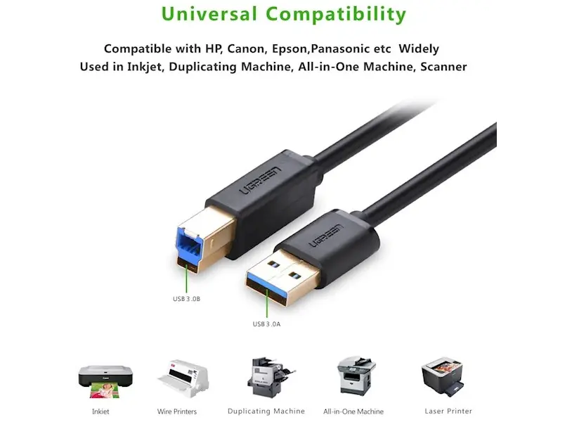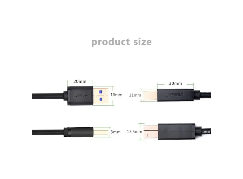 პრინტერის კაბელი UGREEN US210 (10372) USB-B 3.0 Type B to Type A Print Cable 2m (Black)