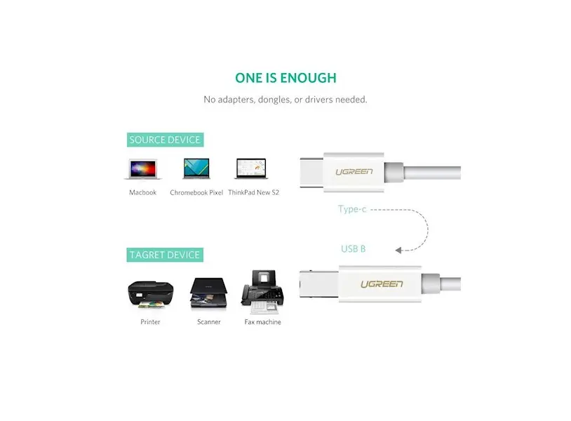 პრინტერის კაბელი UGREEN US241 (40417) USB Type C to USB-B Cable White 1.5M