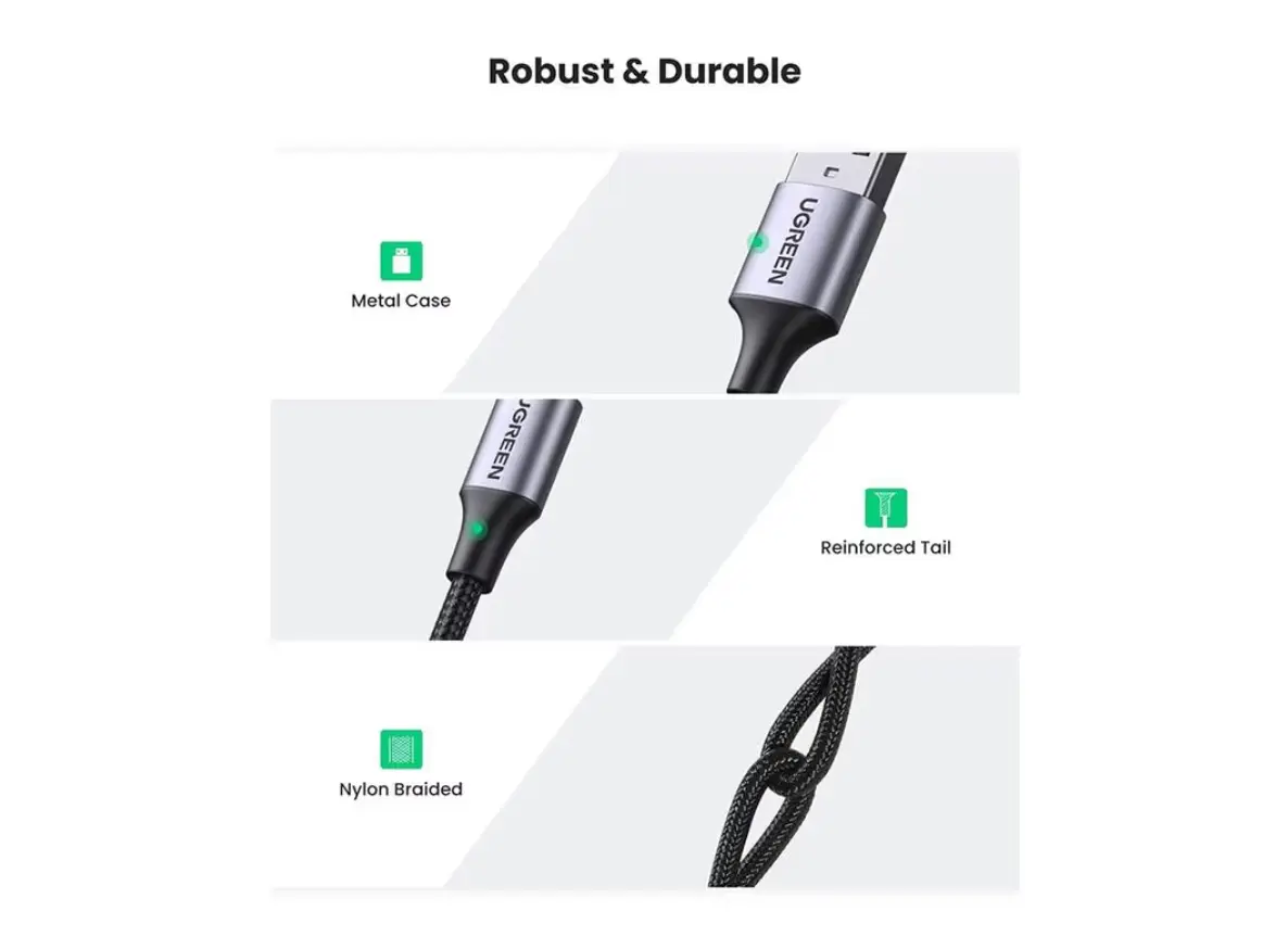 კაბელი Ugreen USB 2.0 A to USB-C Cable 2m Black/60128