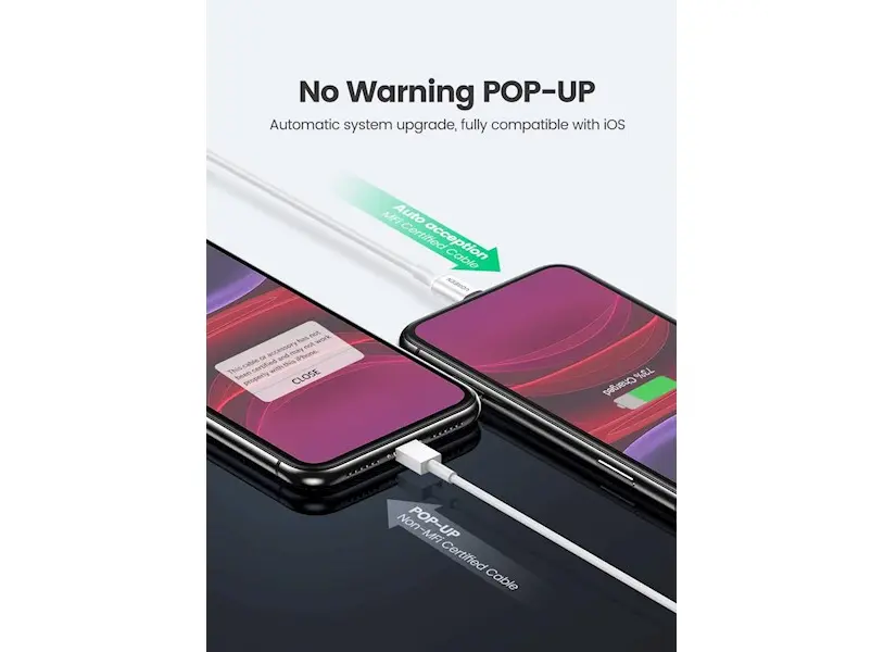 - სერთიფიკატი: Mfi სერთიფიცირებული ჩამონტაჟებული ჩიპსეტით, დამოწმებული Apple-ის კომპანიის მიერ.