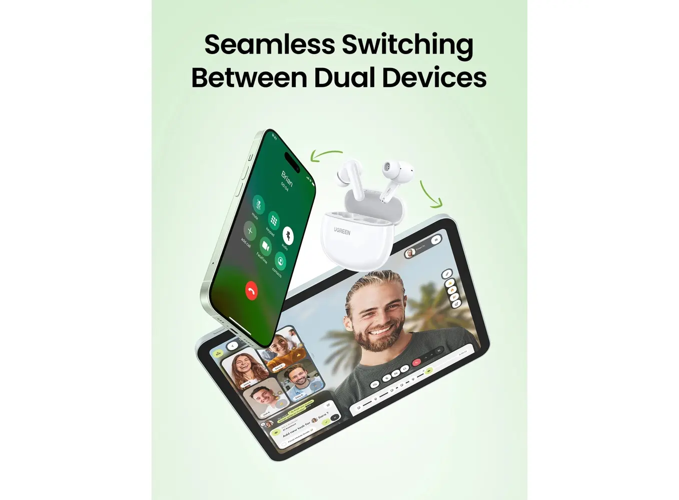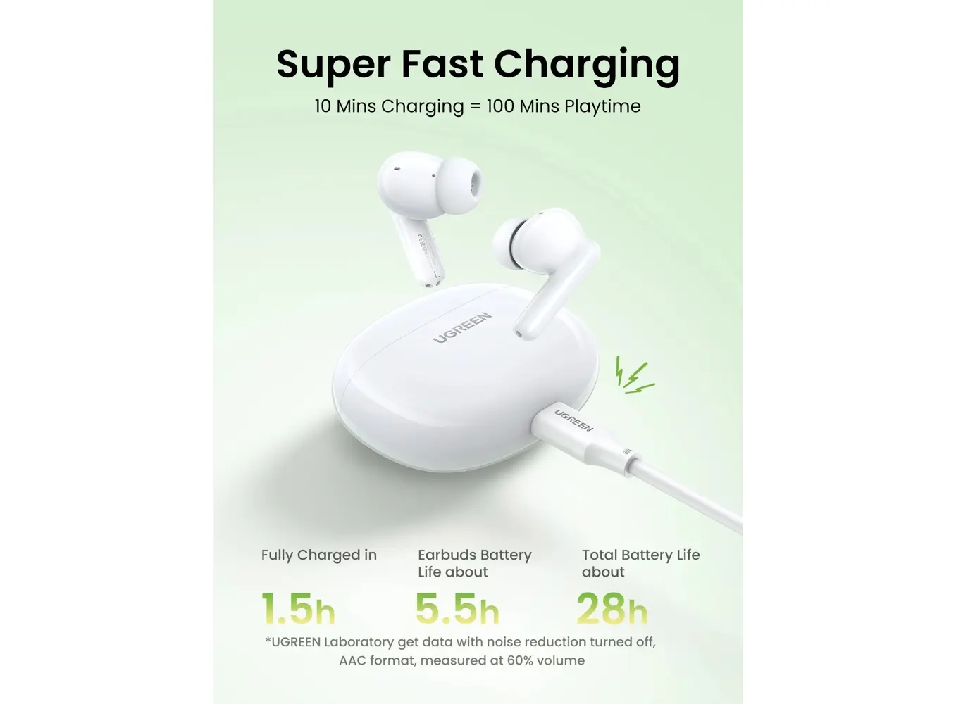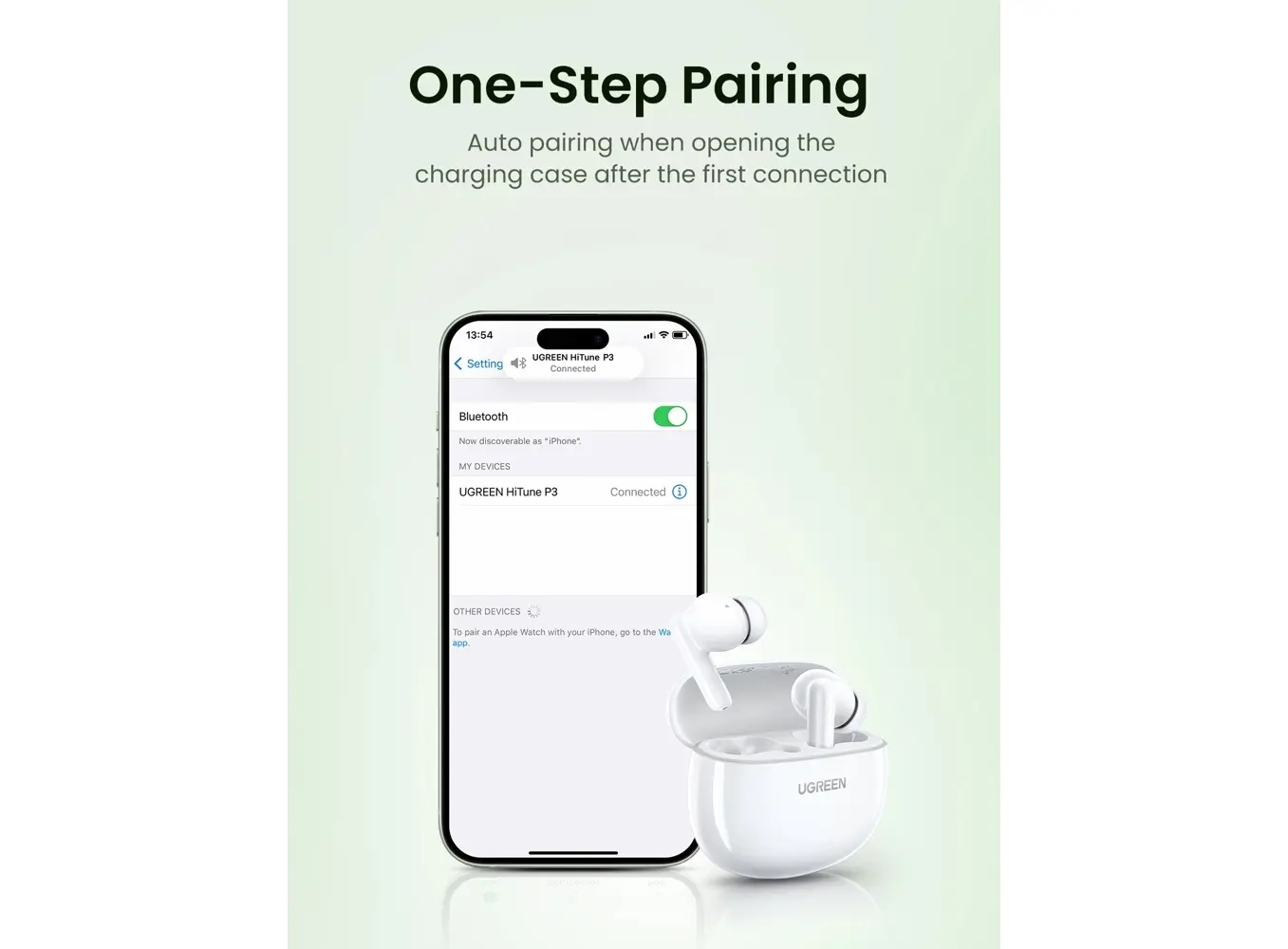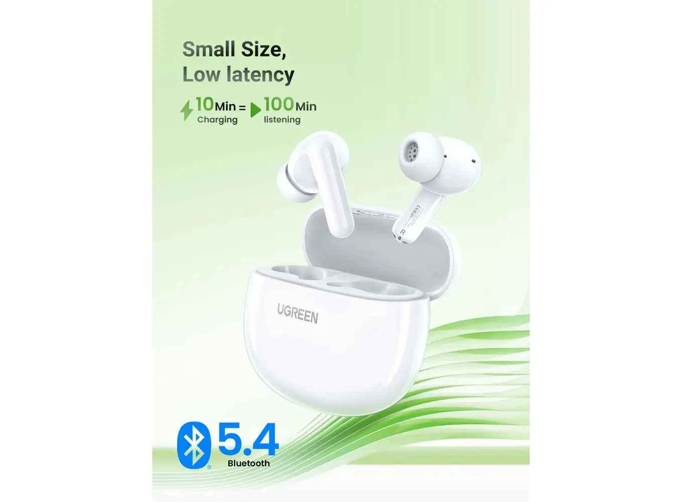 ყურსასმენი UGREEN WS207 (45110) HiTune P3, Earbuds, Wireless, Bluetooth, IPX5, White