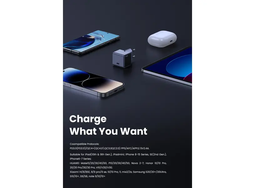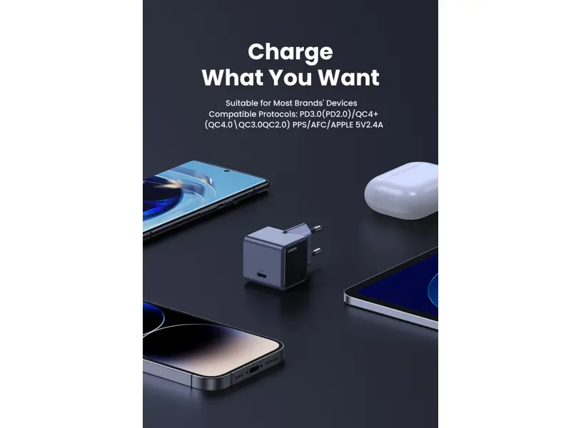 - თავსებადი პროტოკოლები: PD3.0 (PD2.0), QC4+ (QC4.0, QC3.0, QC2.0), PPS, AFC, Apple 5V2.4A