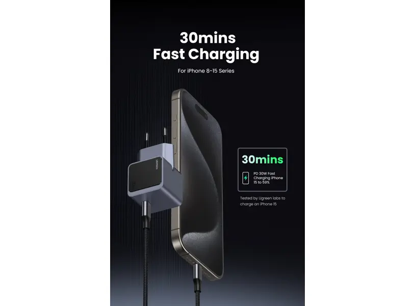 მობილურის დამტენი UGREEN X503 (35041) NExode Air, 30W, Type-C, GaNInfinity Fast Charger, Grey