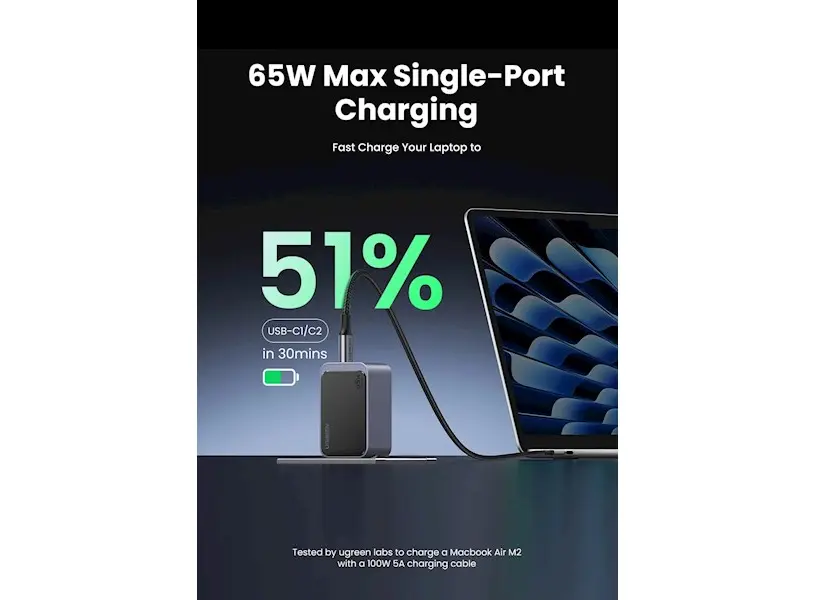 მობილურის დამტენი UGREEN X553 (35042) Nexode Air, 65W, USB, USB-C, Grey