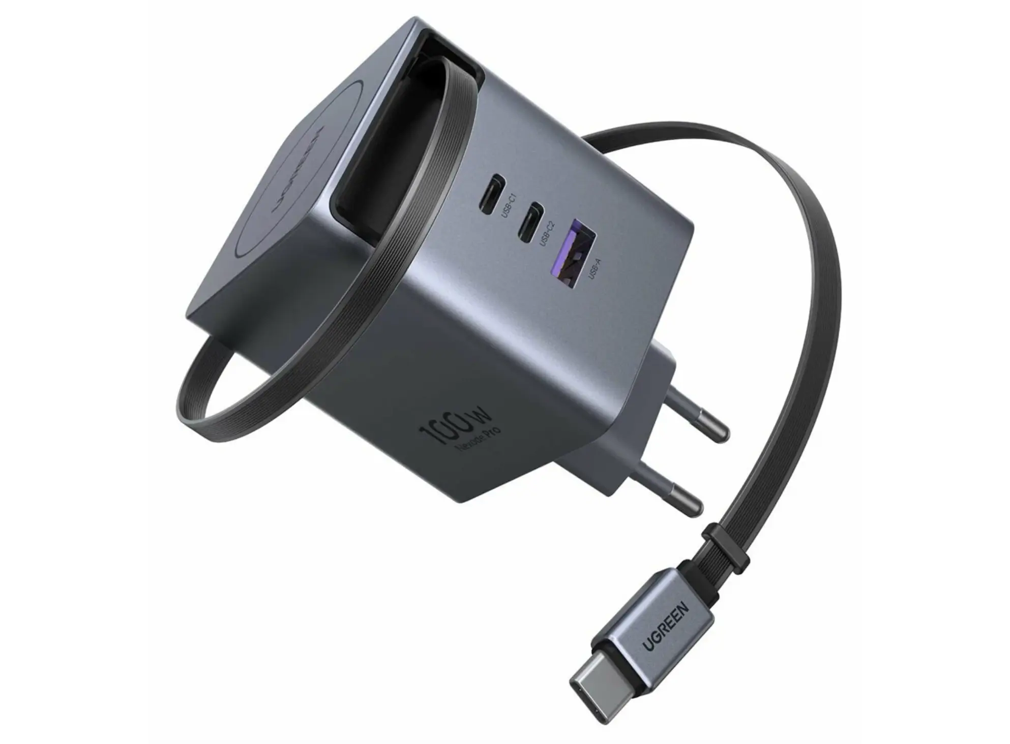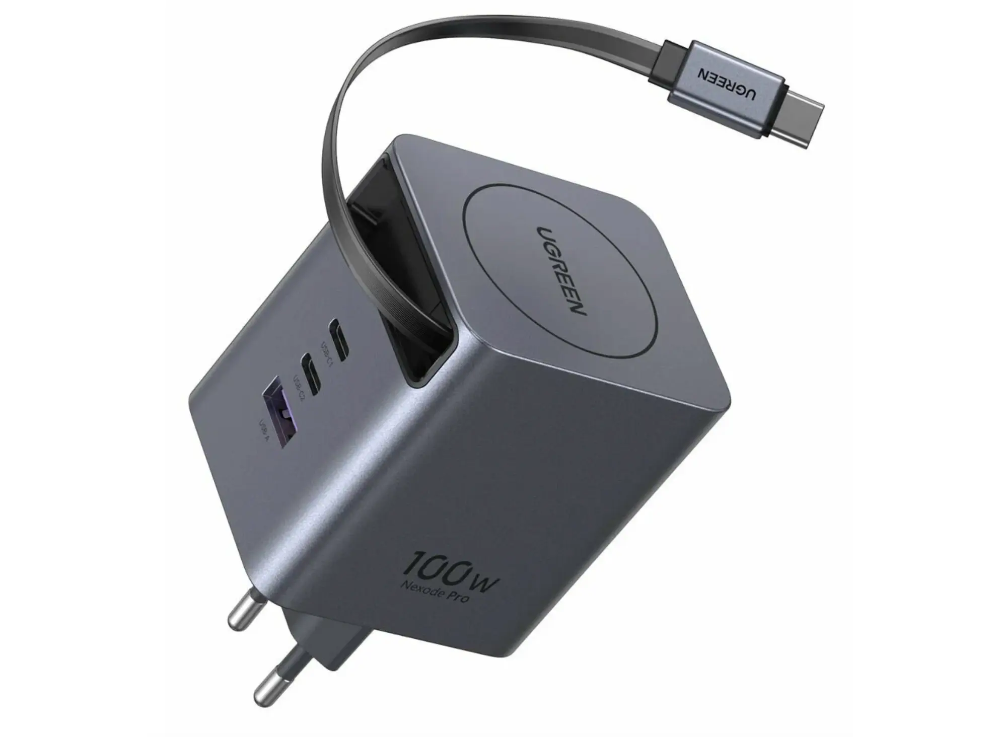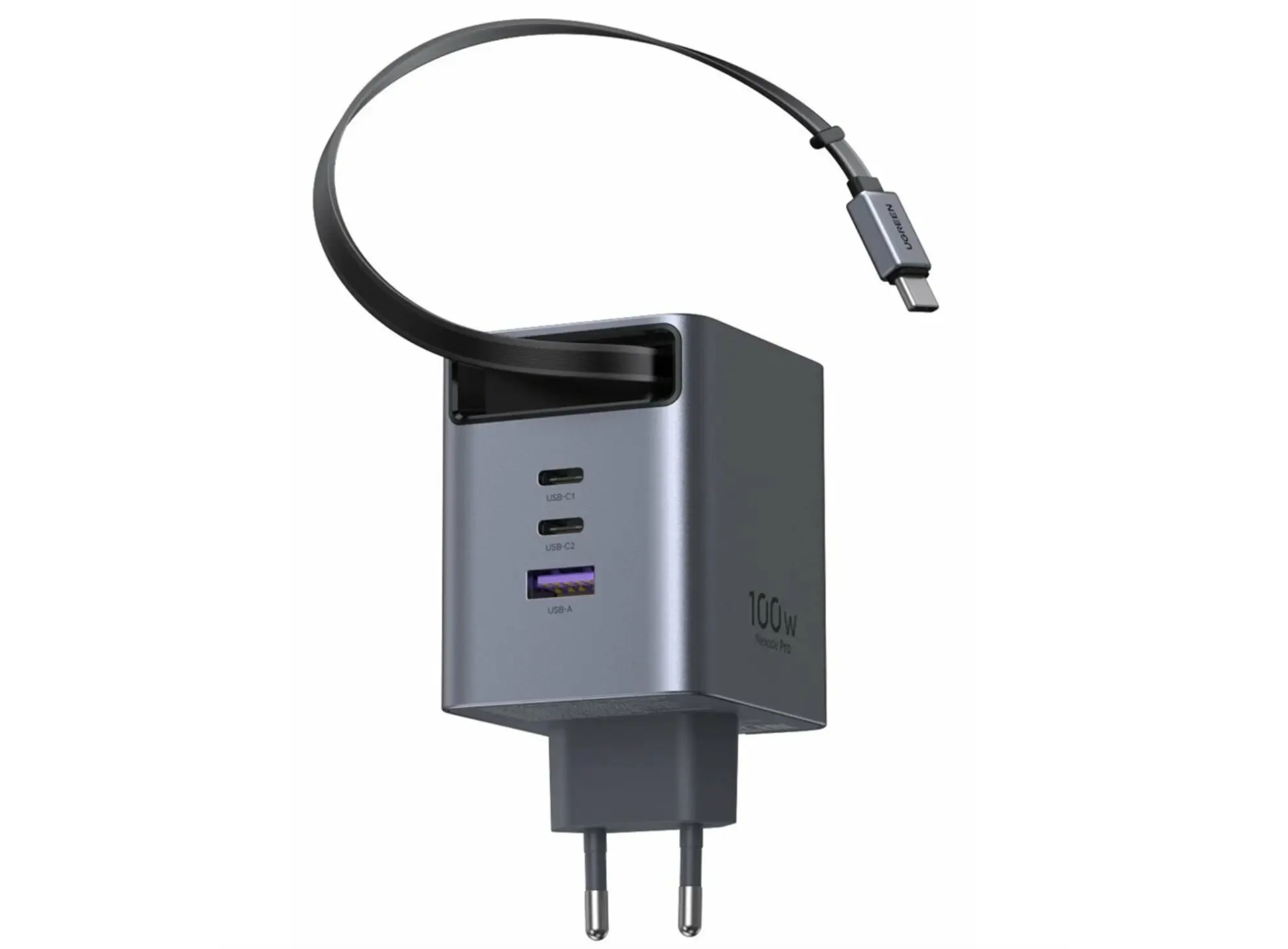 ადაპტერი UGREEN X616 (65828), 100W, GaN Fast Charger with Retractable Cable, Grey