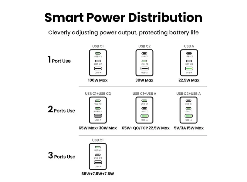 - სწრაფი დატენვის მხარდაჭერა: QC 3.0, QC 4.0, AFC, FCP, PD