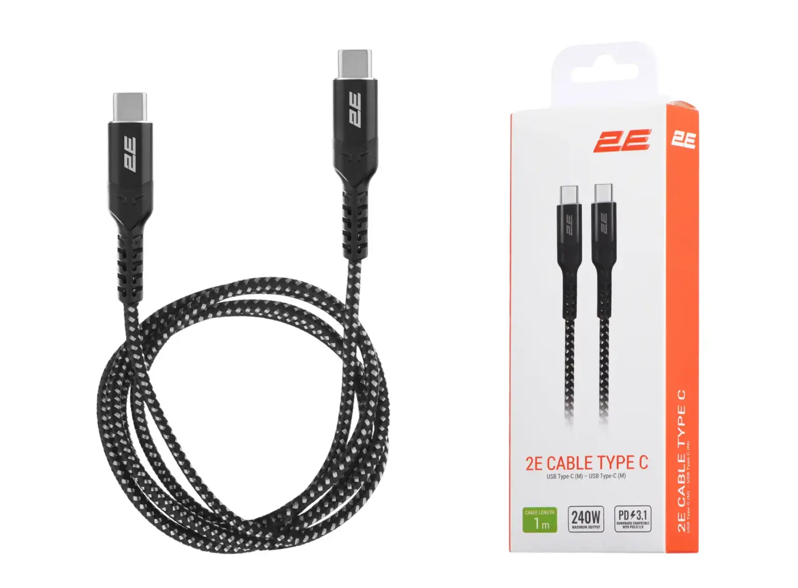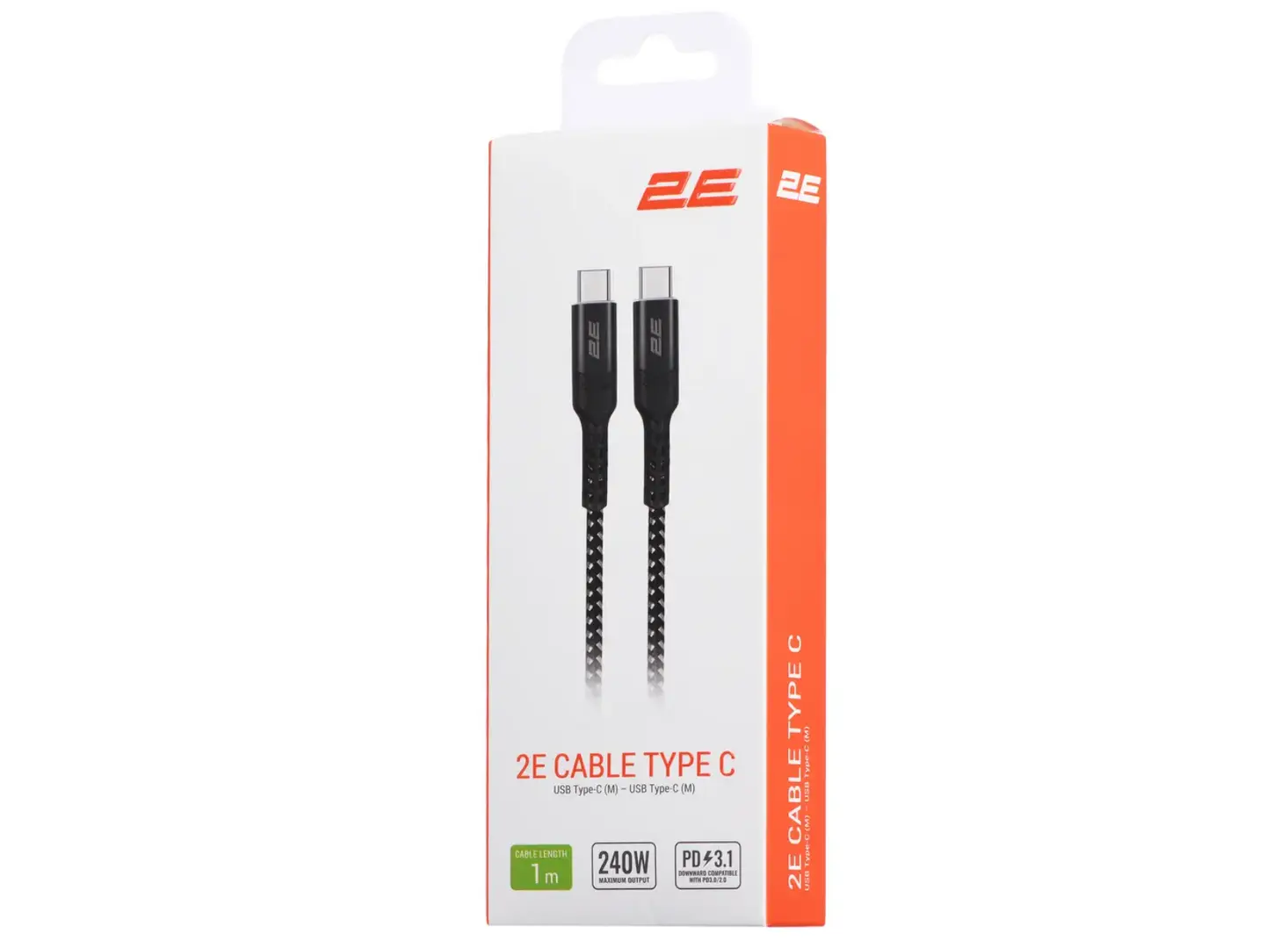 USB კაბელი 2E Сable USB-C > USB-C charge/data, 1m, 240W Type-C, Aluminum Shell, black