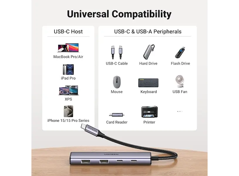 USB-C ჰაბი UGREEN CM473 (15395), Type-C, USB, Hub, Grey