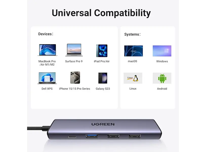 USB-C ჰაბი UGREEN CM478 (15495) Revodok 105, Type-C, USB, HDMI, PD, Hub, Grey