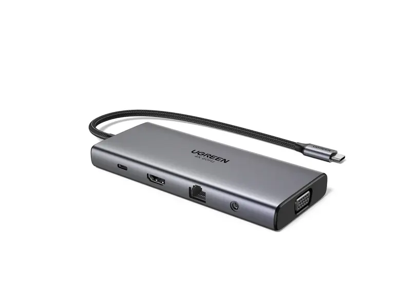 USB-C ჰაბი UGREEN CM639 (45520), Type-C, USB-A, HDMI, VGA, RJ45, SD/TF, 3.5MM, PD, 11-in-1 USB-C Hub, Grey