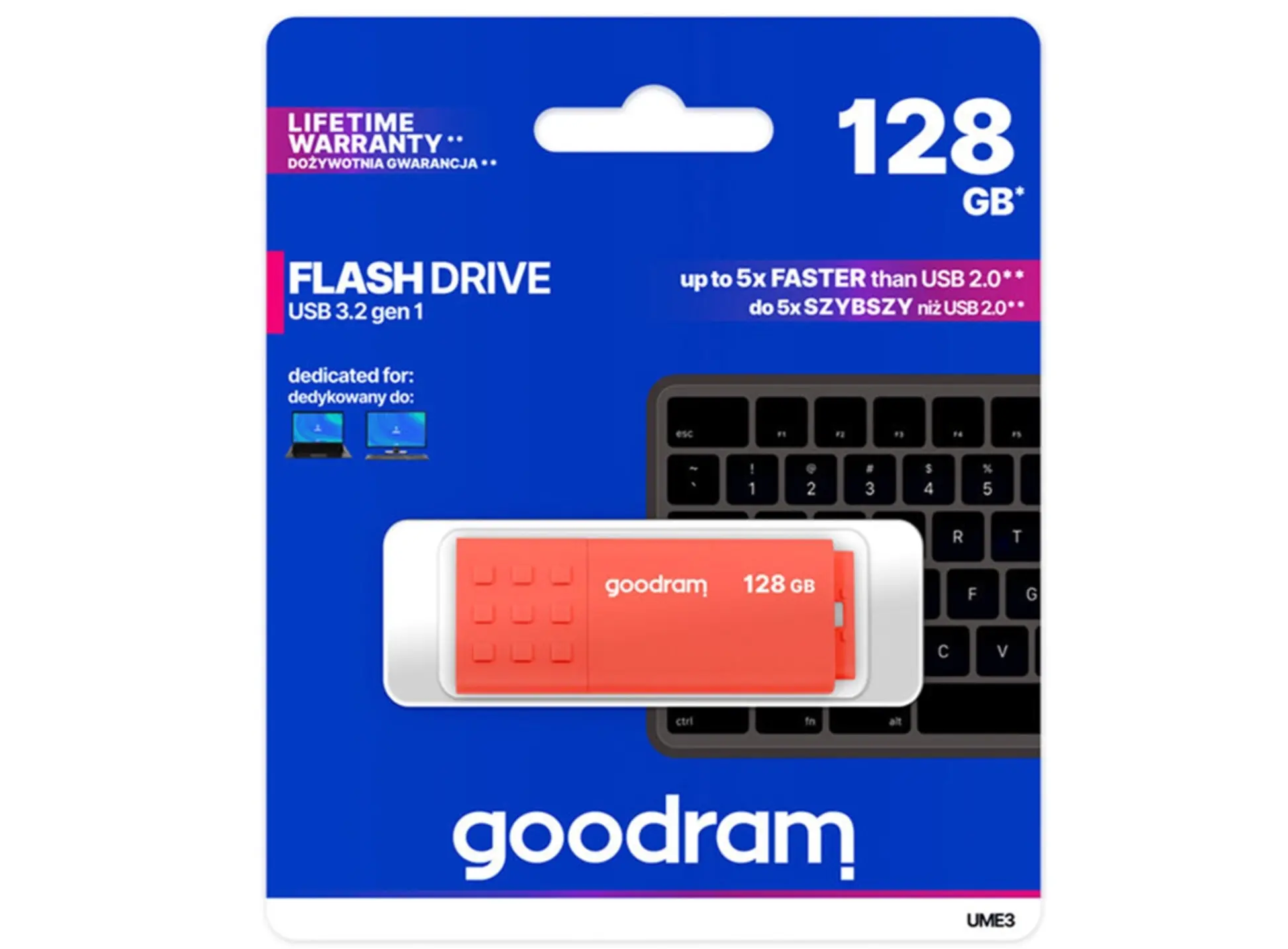 USB ფლეშ მეხსიერება Flash Goodram 128GB UME3 ORANGE USB 3.2 Gen 1