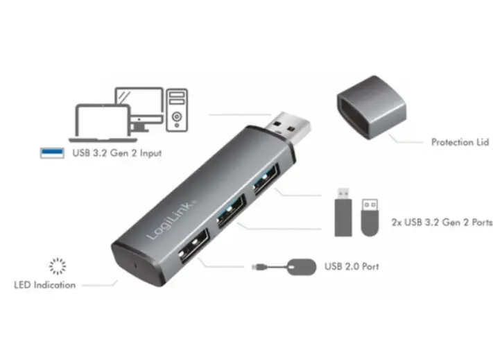 USB ჰაბი Logilink UA0395 USB 3.2 Gen2 3-port Hub with Aluminum Casing