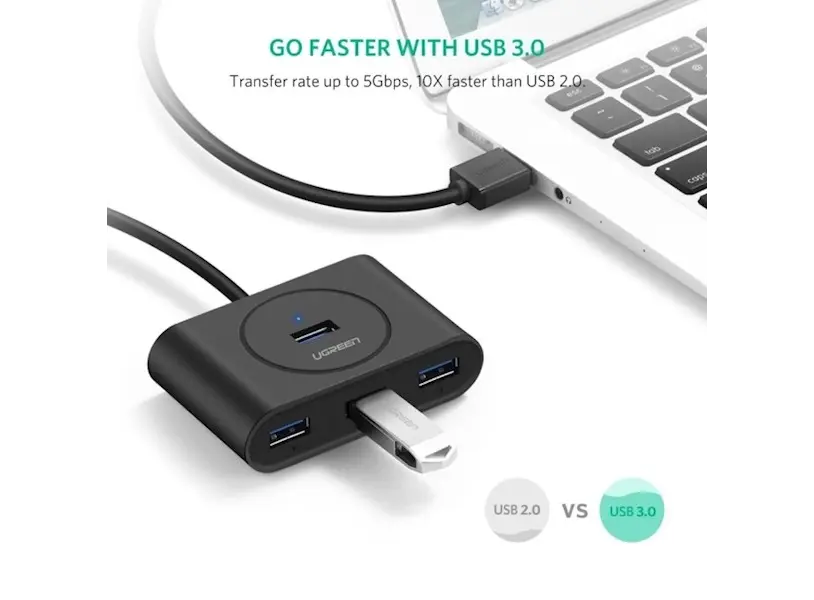USB ჰაბი UGREEN CR113 (20291) NEW USB 3.0 4 Ports Hub with 2.0 OTG Black 1M