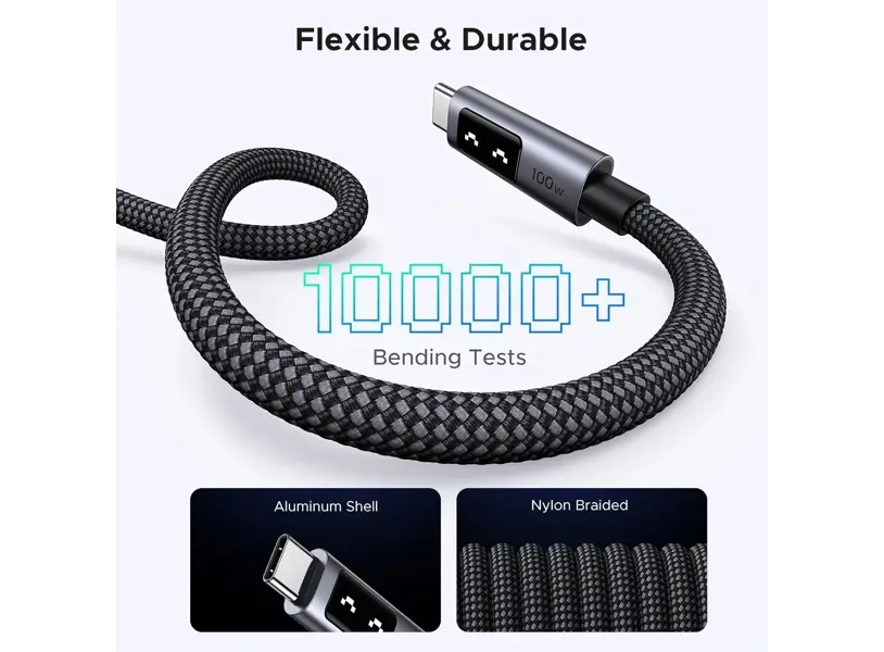 UGREEN Uno L509 (35501) არის 100W Type-C to Type-C მაღალი სიმძლავრის USB კაბელი, რომელიც უზრუნველყოფს სწრაფ და უსაფრთხო დატენვას ლეპტოპებისთვის, სმარტფონებისთვის, ტაბლეტებისა და სხვა Type-C მოწყობილობებისთვის. PD (Power Delivery) 3.0 და QC (Quick Charge) 4.0 მხარდაჭერა უზრუნველყოფს ეფექტურ ენერგომომარაგებას, რაც ამცირებს დატენვის დროს და იცავს მოწყობილობას გადახურებისა და გადატვირთვისგან. მტკიცე და გამძლე ნაქსოვი დიზაინი, მაღალი გამტარობის სპილენძის კაბელი და 1 მეტრიანი სიგრძე ქმნის მოქნილ და კომფორტულ გამოყენების გამოცდილებას ყოველდღიურ ცხოვრებაში.