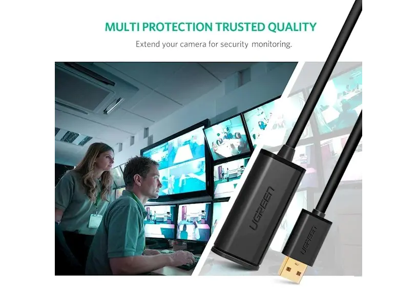 USB დამაგრძლებელი UGREEN US121 (10323) USB 2.0 Active Extension Cable with Chipset 15m (Black)