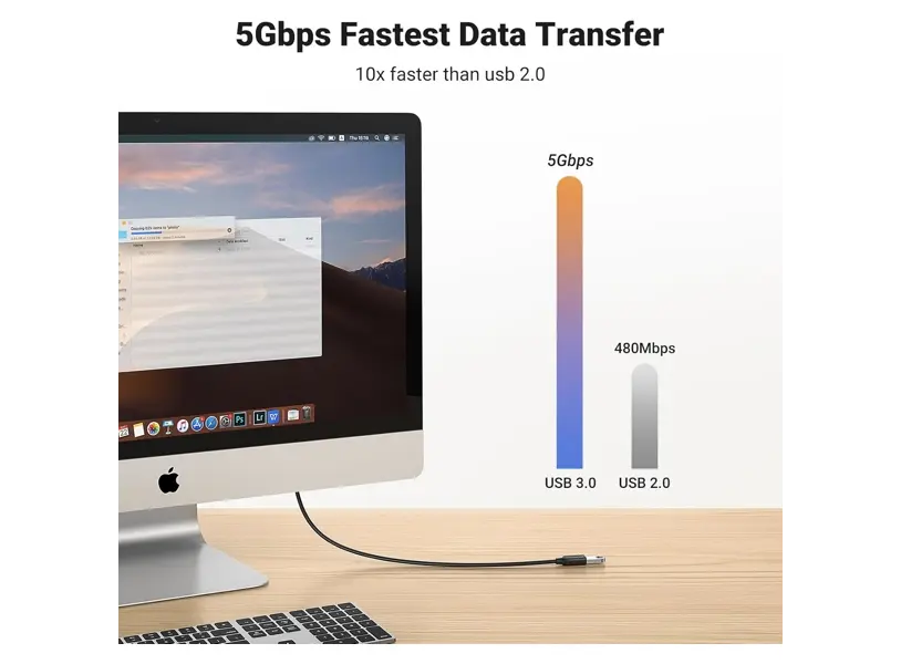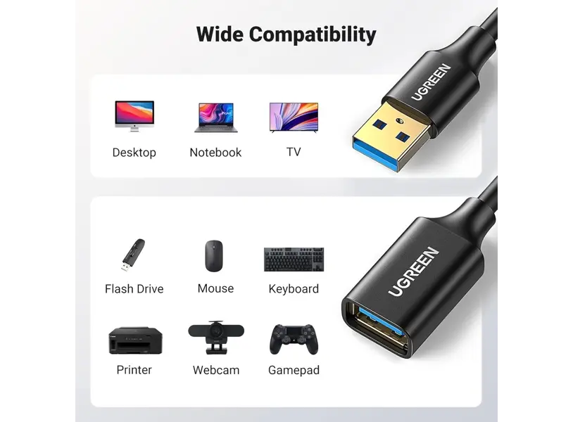 UGREEN US129 არის მაღალი ხარისხის USB 3.0 დამაგრძელებელი კაბელი, რომელიც საშუალებას გაძლევთ გაახანგრძლივოთ კავშირი თქვენს USB მოწყობილობასა და კომპიუტერს შორის 5 მეტრამდე მანძილზე, მონაცემთა გადაცემის სიჩქარის დაკარგვის გარეშე. ის უზრუნველყოფს 5Gbps-მდე გადაცემის სიჩქარეს, რაც იდეალურია გარე მყარი დისკებისთვის, პრინტერებისთვის, კლავიატურებისთვის, კამერებისთვის და სხვა აქსესუარებისთვის. კაბელი მტკიცე, გამძლე და დაცულია EMI ჩარევისგან, რაც ხელს უწყობს სტაბილურობას. Plug & Play ფუნქცია არ საჭიროებს დამატებით პროგრამულ უზრუნველყოფას. შავი დიზაინი პრაქტიკულია ნებისმიერ სამუშაო გარემოში.