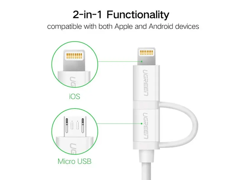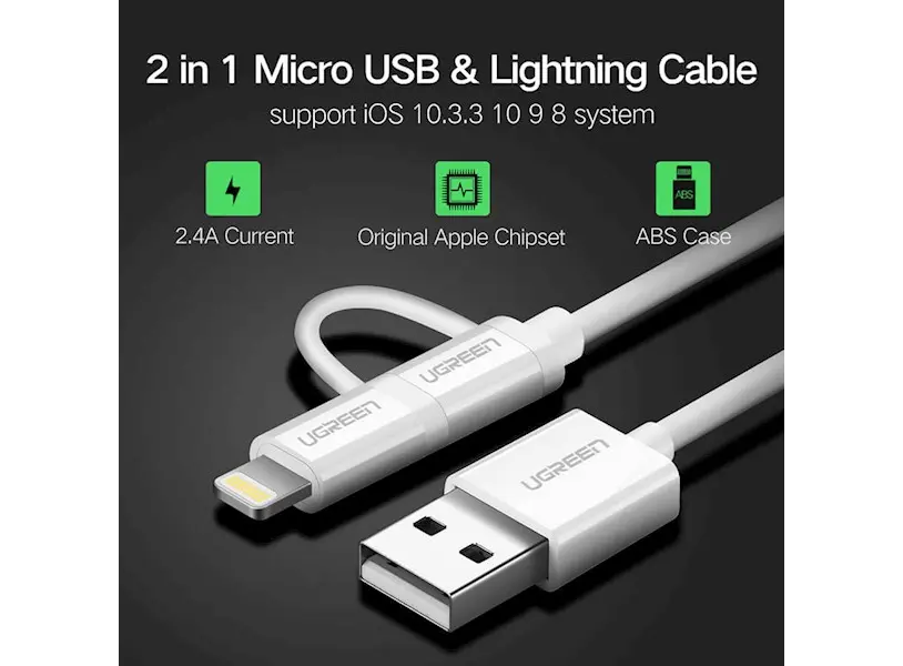USB კაბელი UGREEN US178 (20876) USB 2.0 to Micro USB+Lightning (2 in 1) Data Cable 1M