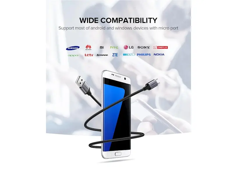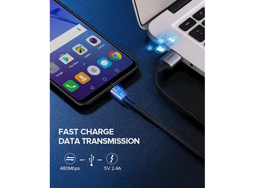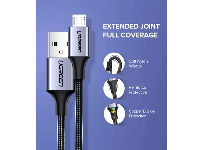 USB კაბელი UGREEN US290 (60147) USB 2.0 A to Micro USB Cable Nickel Plating Aluminum Braid 1.5m (Black)
