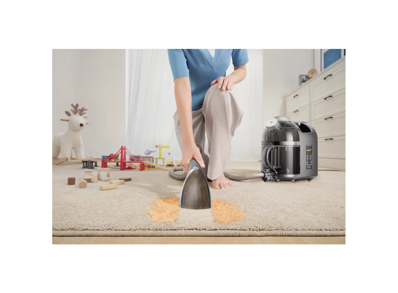 ქიმწმენდის აპარატი Uwant B200 არის მრავალფუნქციური მოწყობილობა, რომელიც აერთიანებს მაღალი წნევის ორთქლის და ღრმა წმენდის ტექნოლოგიას ერთ კომფორტულ სისტემაში. 500 ვატიანი ძრავი უზრუნველყოფს ძლიერ შეწოვას და ეფექტურ მტვრის, ლაქებისა და ბაქტერიების მოცილებას სხვადასხვა ზედაპირიდან — ხალიჩიდან, ავეჯიდან თუ ტანსაცმლიდან. 1.5 ლიტრიანი წყლის ავზი გაძლევთ საშუალებას შეასრულოთ ხანგრძლივი წმენდა შეფერხების გარეშე, ხოლო ორთქლის ფუნქცია იდეალურია ნაჭრების გასათანაბრებლად და სადეზინფექციო პროცესებისთვის. კომპაქტური დიზაინი, მარტივი სახელური და თანამედროვე ნაცრისფერი ფერი აპარატს აქცევს პრაქტიკულ და ესთეტიკურ არჩევანად ნებისმიერი სახლისთვის. Uwant B200 დაგეხმარებათ სწრაფად, ეფექტურად და უსაფრთხოდ შეინარჩუნოთ თქვენი ნივთების სისუფთავე ყოველდღიურობაში.