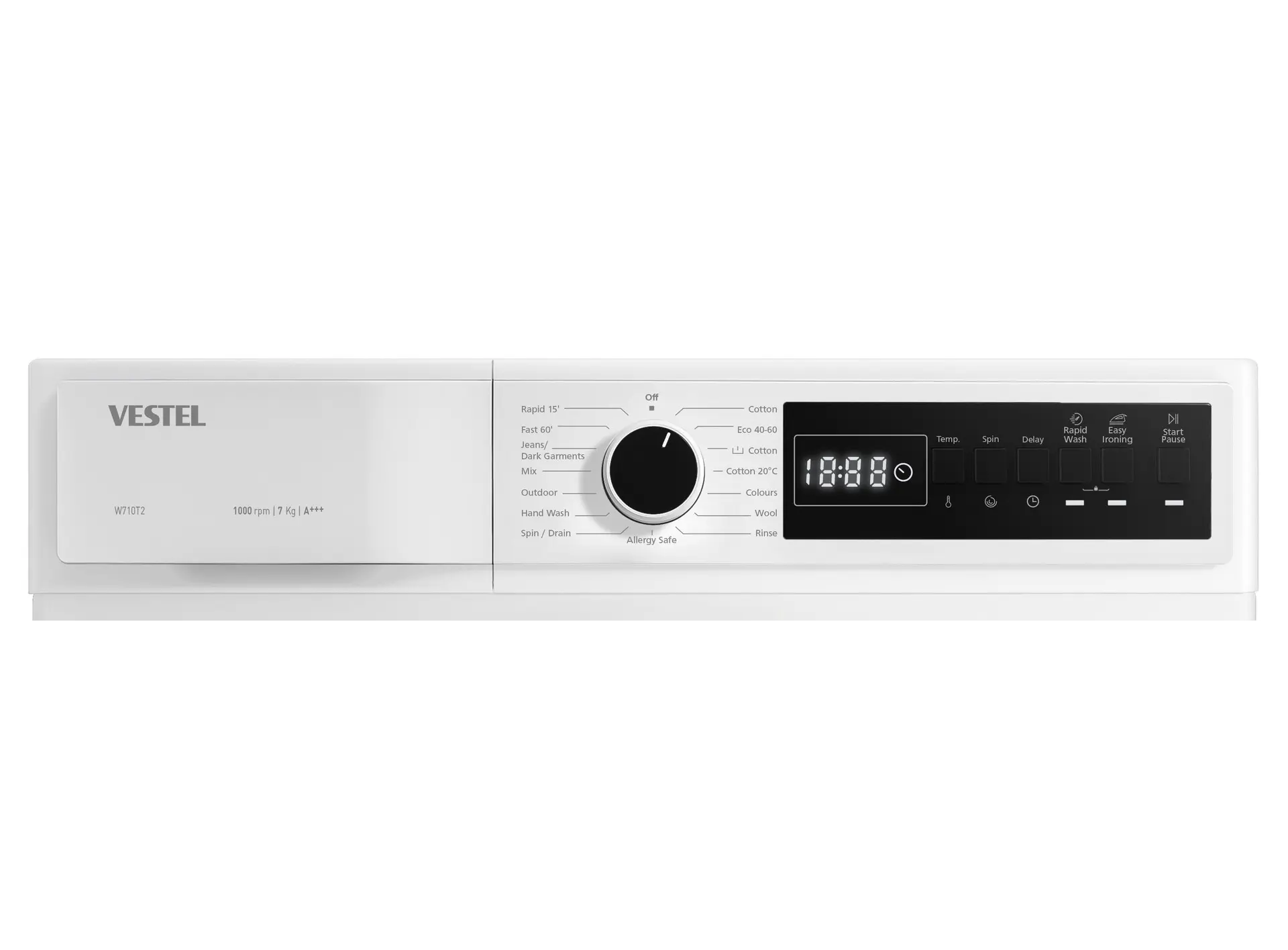 სარეცხი მანქანა Vestel W810T2 უზრუნველყოფს მაღალი ხარისხის რეცხვას ყოველდღიური მოხმარებისთვის. მრავალფეროვანი პროგრამების არჩევანი გაძლევს საშუალებას შეურჩიო საუკეთესო რეჟიმი სხვადასხვა ტიპის ქსოვილს, იქნება ეს ნაზი ტანსაცმელი, საბავშვო ტანსაცმელი თუ ძლიერად დაბინძურებული ტექტილი. თანამედროვე ტექნოლოგია იძლევა ენერგოეფექტურ მუშაობას, რაც ამცირებს ელექტროენერგიის ხარჯს და ზრდის მოხმარების კომფორტს. დაბალი ხმაურის დონე და გამძლე კონსტრუქცია სარეცხ მანქანას ხდის საიმედო პარტნიორად ნებისმიერი ოჯახის ყოველდღიურობაში. მარტივი მართვის პანელი, ინტუიციური მენიუ და მოხერხებული დიზაინი უზრუნველყოფს კომფორტს, სივრცის სწორ გამოყენებას და ეფექტურ შედეგს ყოველ ციკლზე.