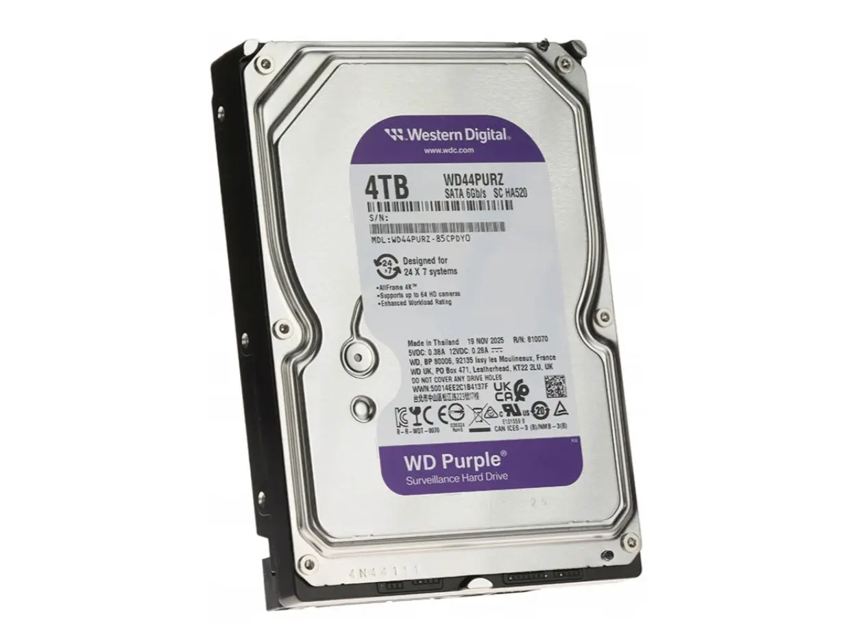 მყარი დისკი Western Digital HDD SATA 4TB 5400RPM 128MB PURPLE WD44PURZ WDC