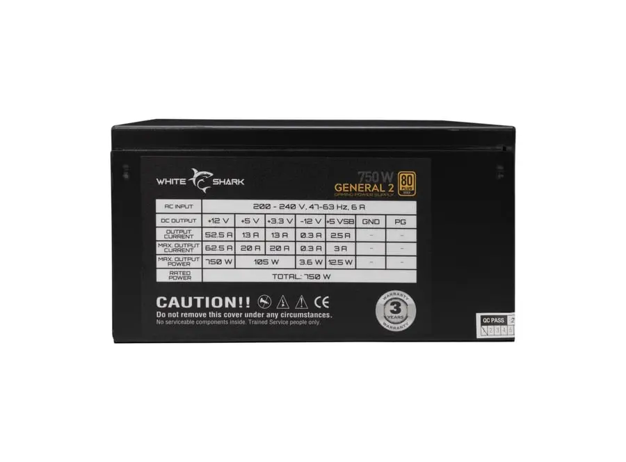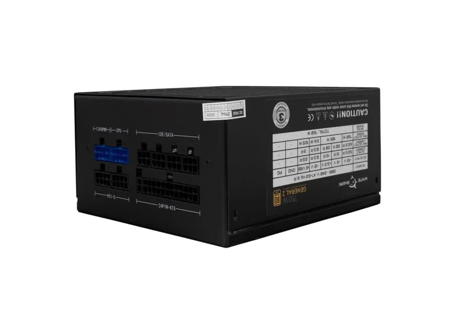 White Shark GPSU-750W GENERAL-2 არის 750W 80+ GOLD სერტიფიცირებული მოდულური კვების ბლოკი, რომელიც შექმნილია მაღალი წარმადობის სისტემებისთვის. 80 Plus Gold სერტიფიკაცია უზრუნველყოფს ენერგიის მაღალ ეფექტურობას და ნაკლებ დანაკარგს, რაც ამცირებს დენის მოხმარებას და სითბოს გამოყოფას.