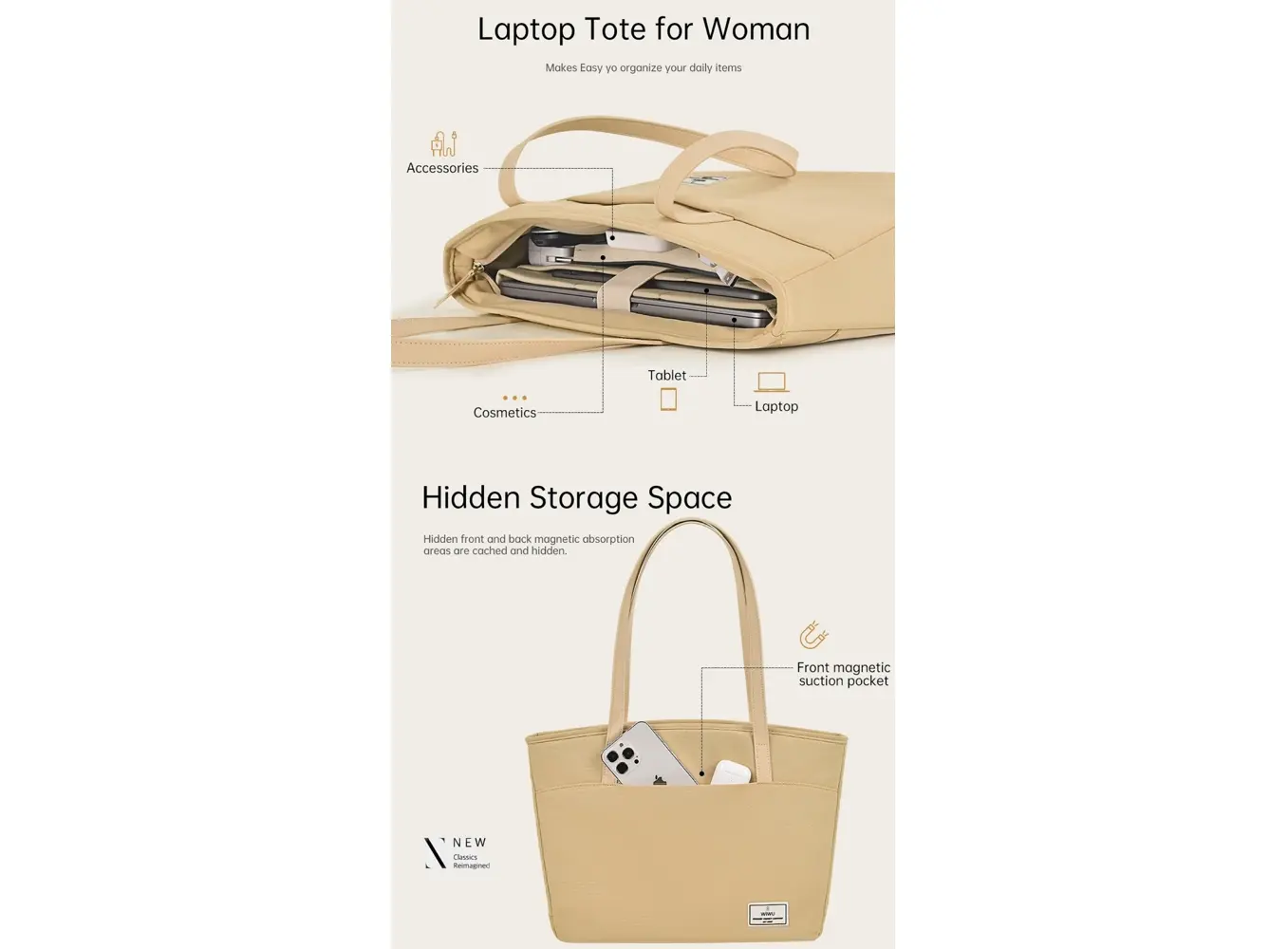 ნოუთბუქის ჩანთა WiWU 14'' Ora Tote Ivory