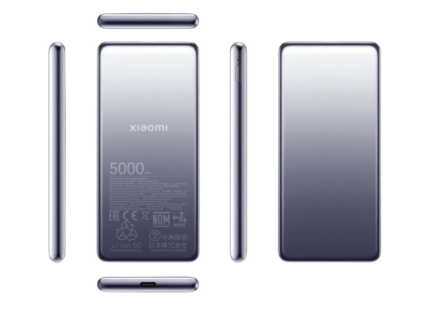 პორტატული დამტენი Xiaomi Ultra Slim Power Bank 5000mAh GL