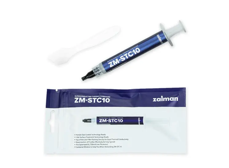 ZALMAN ZM-STC10 თერმო პასტა წარმოადგენს მაღალეფექტურ თერმოგამტარ მასალას, რომელიც უზრუნველყოფს პროცესორებისა და სხვა მაღალი ტემპერატურის მქონე კომპონენტების ოპტიმალურ გაგრილებას. მისი მაღალი თერმული კონდუქტივობა (10 W/mK) ამცირებს სითბოს წინააღმდეგობას და უზრუნველყოფს სითბოს სწრაფ და ეფექტურ გადაცემას პროცესორიდან გაგრილების სისტემაზე. პასტა მარტივად დაიტანება ზედაპირზე, აქვს კარგი სტრუქტურა, რომელიც იცავს ჰაერის ბალიშების წარმოქმნისგან, რაც მაქსიმალურ ეფექტურობას იძლევა.