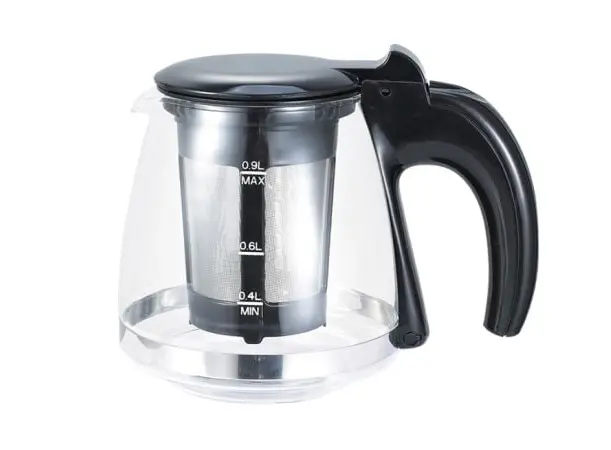 - უჟანგავი ფოლადის კორპუსი და მინის ჩაის ქვაბი